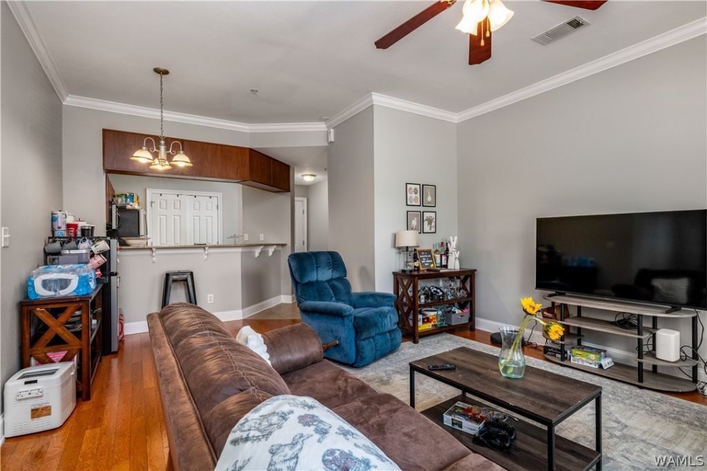 Enjoy convenient living in this well-appointed condo at the sought-after Traditions Condominiums, located just minutes from The University of Alabama. The spacious living area features beautiful hardwood flooring and opens to a covered balcony. The kitchen offers plenty of room to gather, complete with a bar and stainless steel appliances. Generously sized bedrooms each feature walk-in closets and private full baths. Residents enjoy excellent amenities including a pool, fitness center with tanning beds, clubhouse, and business center. The gated community offers controlled access along with security cameras, fire alarms, and sprinkler systems. HOA dues are $369 per month and include water and trash service, making this a great opportunity to enjoy low-maintenance living in a prime location.